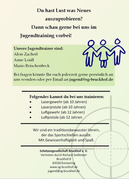Ihr bekommt Informationen über Veranstaltungen und Aktivitäten von unserem Verein und werdet bei kurzfristigen Änderungen der Corona-Regeln über die neuen Vorgaben zu unseren Schießbetrieb informiert.